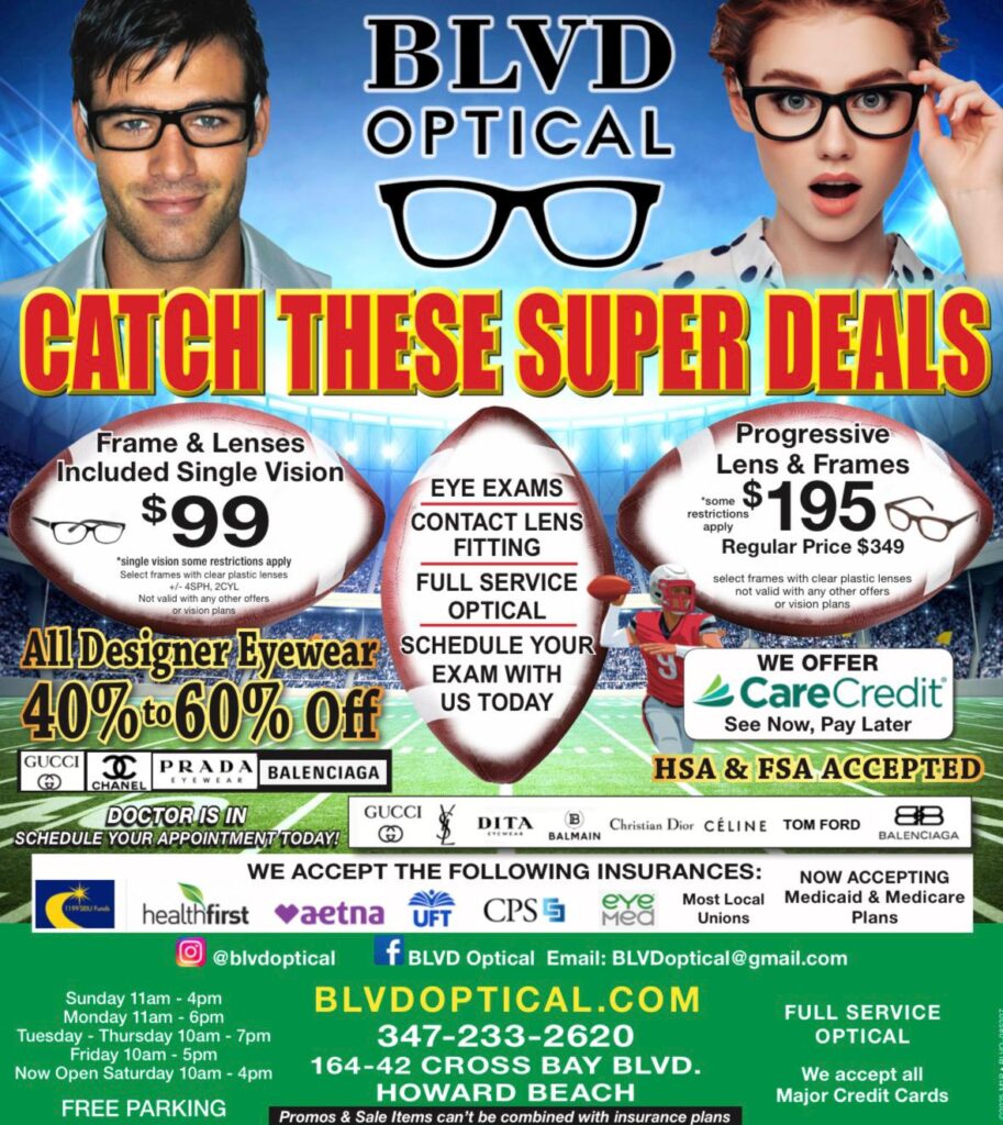 Don’t miss out on our unbeatable offer in Howard Beach. Get your free eye exam and affordable eyewear today. Book now